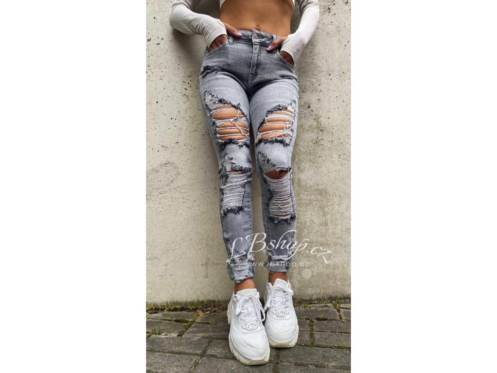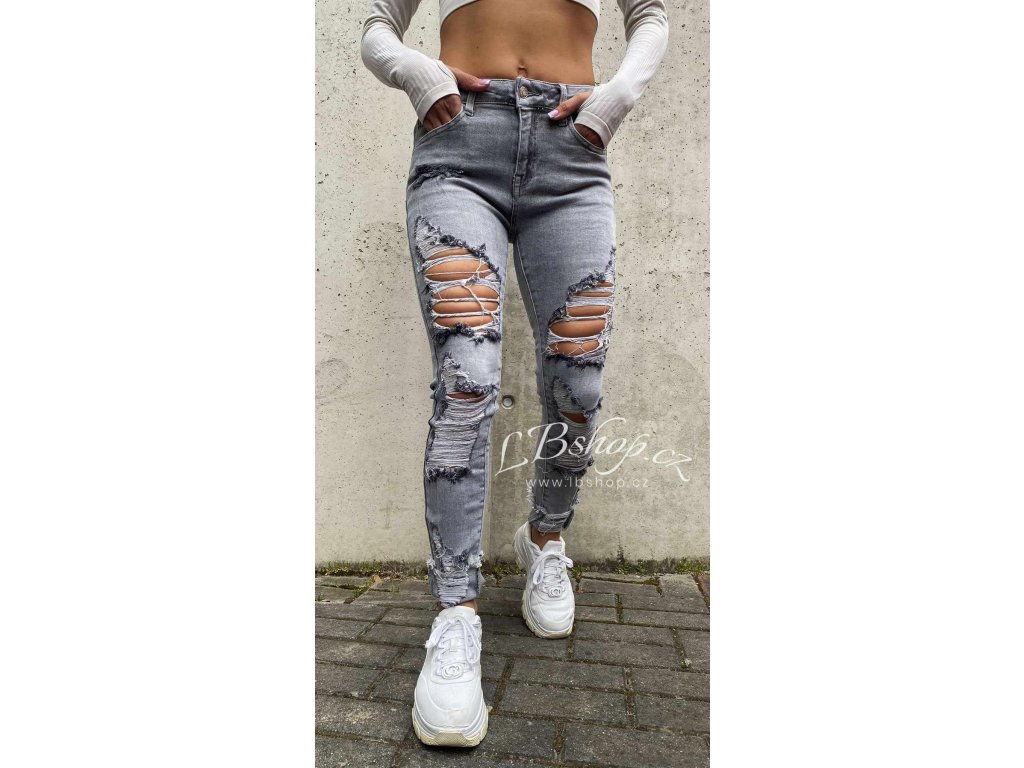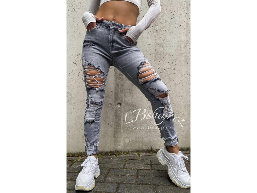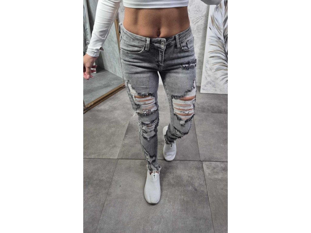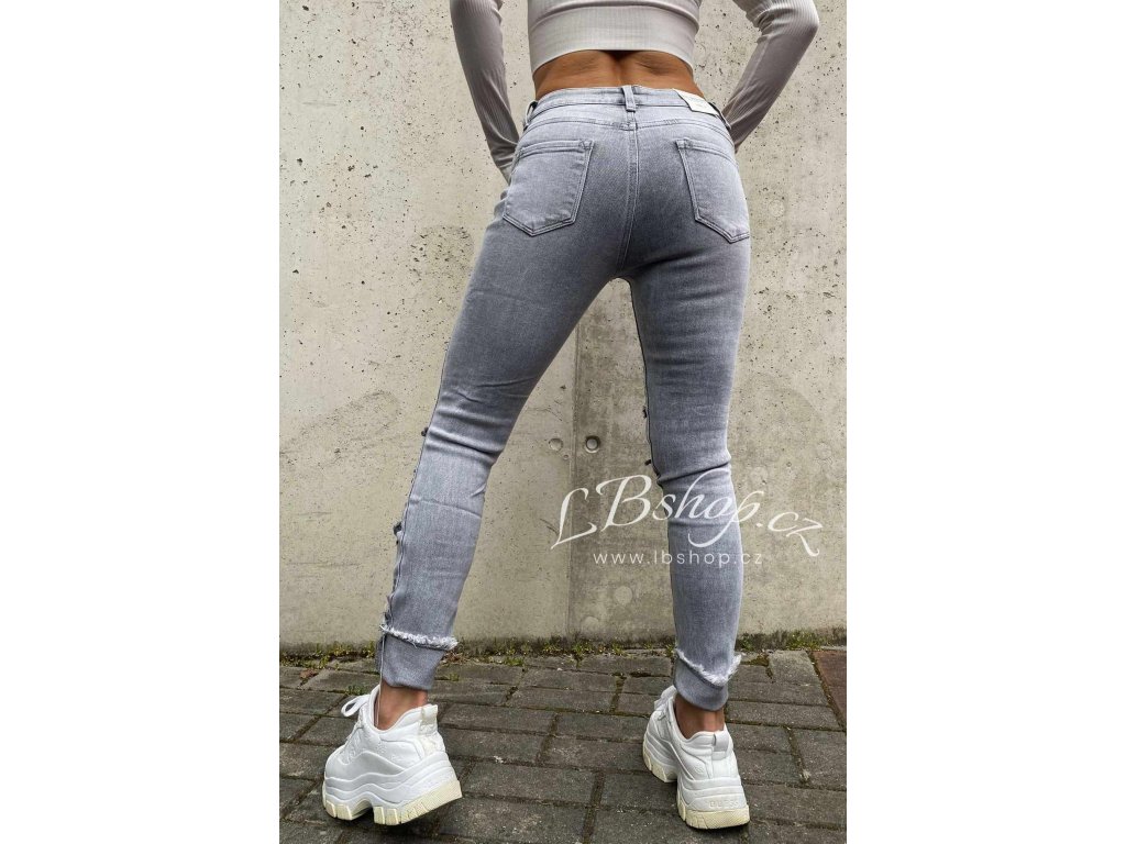 Nádherné šedé slim jeans s módním trháním, které jsou neskutečně v kurzu a dělají top postavu!
