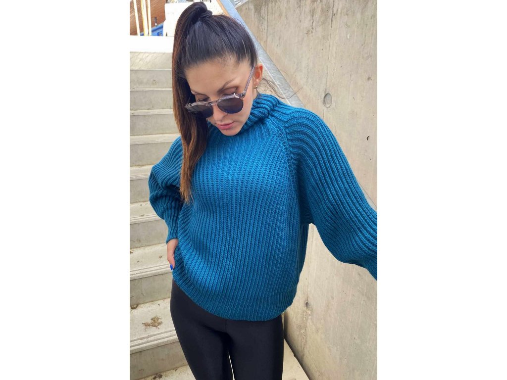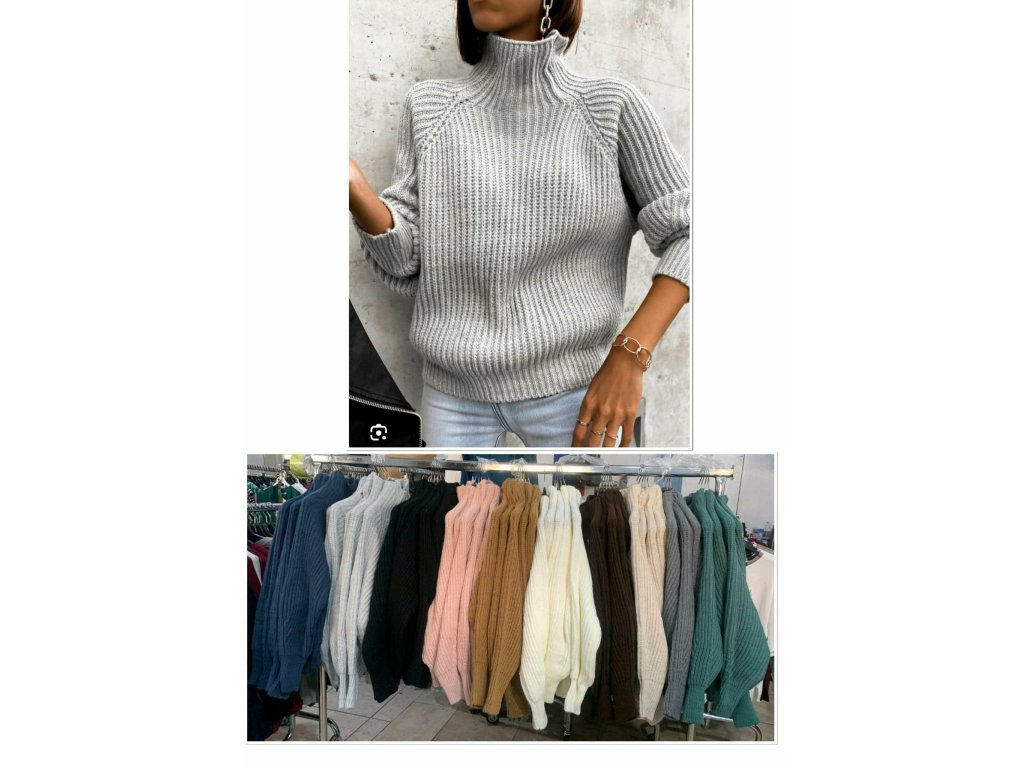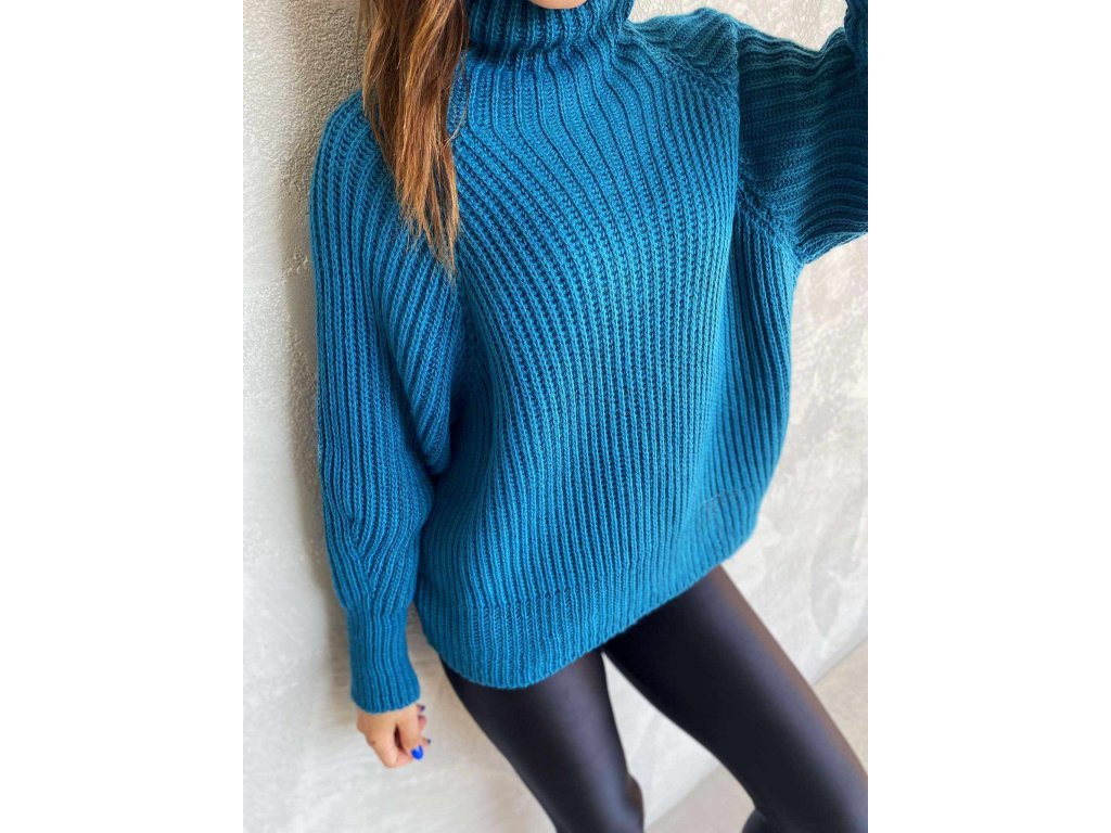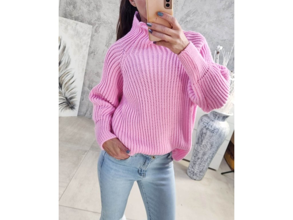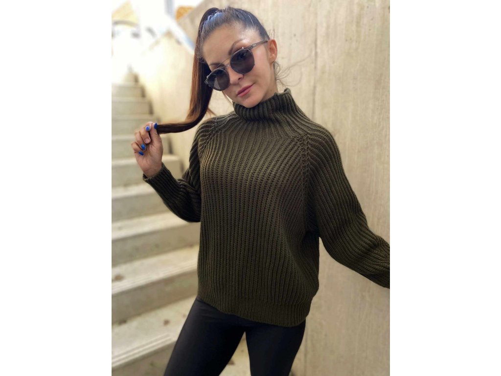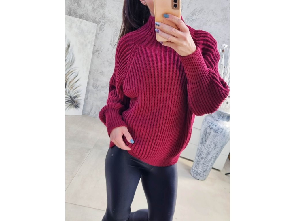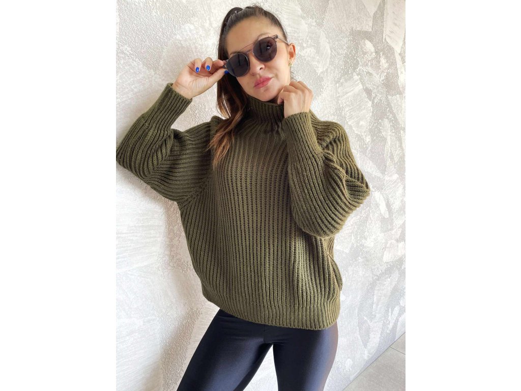 Teplý žebrovaný svetr se stojáčkem a balónovými rukávy. Je silnější a tak dokonale zahřeje.