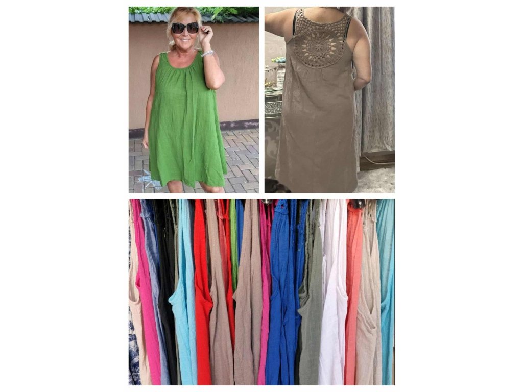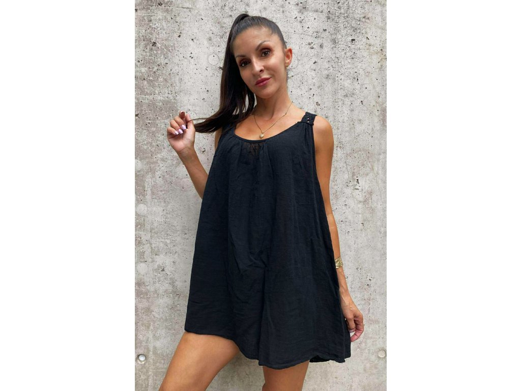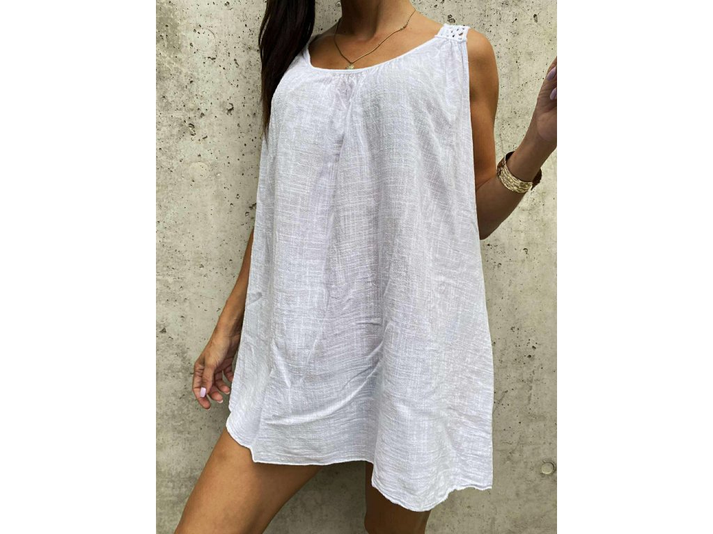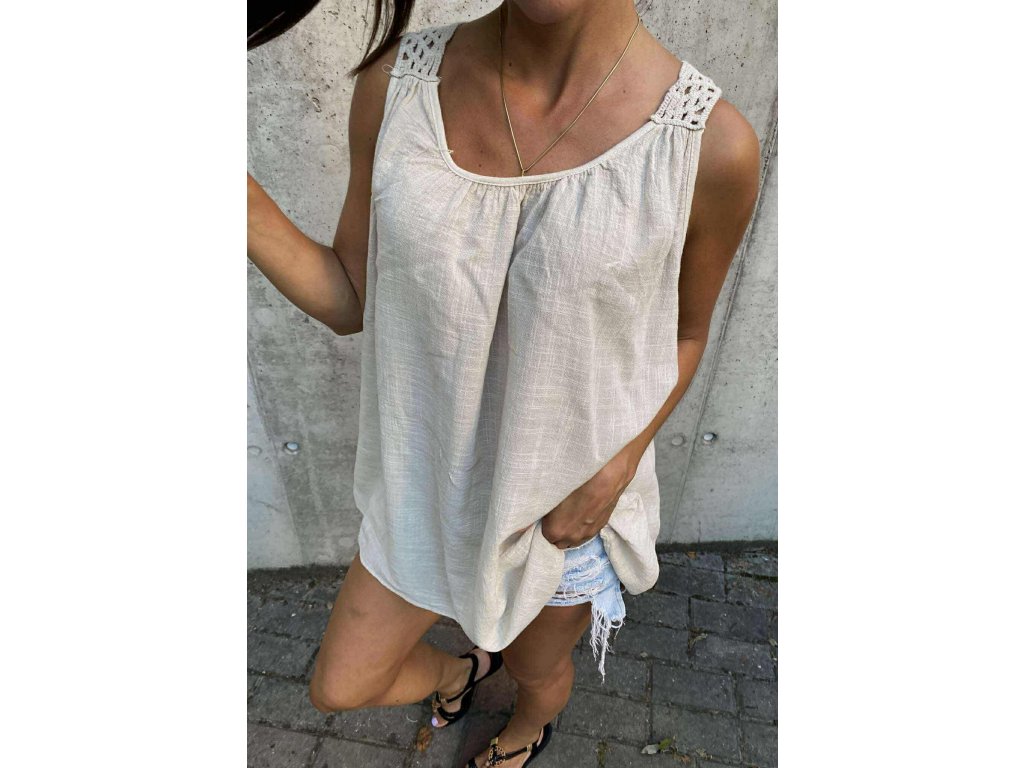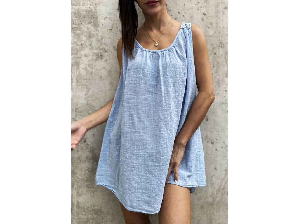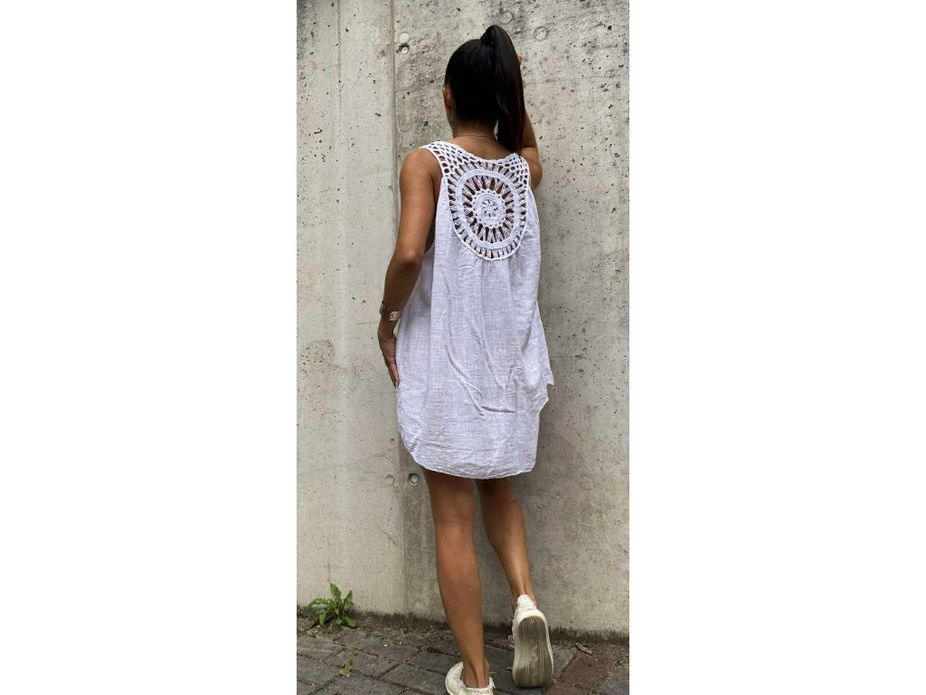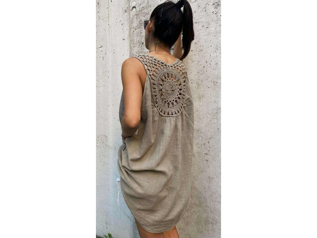 Lněné kratší tunikošaty s krajkou v oversize velikosti, které jsou ke kraťasům perfektní!